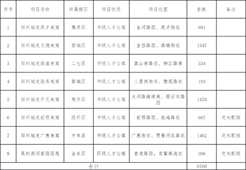 按照《鄭州市人才公寓管理暫行辦法》(鄭政辦〔2023〕11號(hào))要求,2023年全市第十批人才公寓配租事項(xiàng)公告發(fā)布。此次配租人才公寓項(xiàng)目8個(gè),其中7個(gè)為鄭州城發(fā)美寓系列人才公寓,具體情況如下: