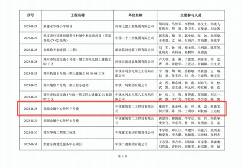 近日,河南省建筑業(yè)協(xié)會發(fā)布《關于公布2023年度第二批河南省優(yōu)質(zhì)結構工程名單的通知》(豫建協(xié)〔2023〕159號),城發(fā)·金岱智慧產(chǎn)業(yè)園二期和龍湖金融中心外環(huán)7號樓兩項工程順利通過專家組考評,榮獲“2023年度河南省優(yōu)質(zhì)結構工程”獎。