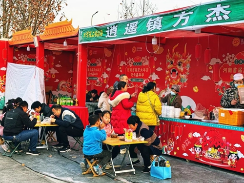 春節(jié)期間正常營(yíng)業(yè),全天候不間斷熬煮香噴噴、熱騰騰的胡辣湯,使美食街這家攤位成功出圈,一碗湯一張餅,日銷(xiāo)量高達(dá)3000份,濃濃河南特色,滿足了眾多游客的心和胃。