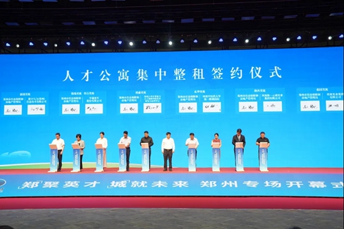 下午,第七屆中國(guó)·河南招才引智創(chuàng)新發(fā)展大會(huì)鄭州專(zhuān)場(chǎng)盛大開(kāi)幕。在開(kāi)幕式上,舉行了人才公寓集中整租簽約儀式。
