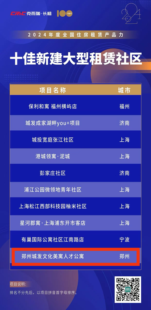 近日,克而瑞2024年度中國住房租賃產(chǎn)品力榜單揭曉,鄭州城發(fā)文化美寓人才公寓憑借卓越的綜合產(chǎn)品力,榮獲“十佳新建大型租賃社區(qū)”稱號(hào)。這一榮譽(yù)不僅是對(duì)鄭州城發(fā)美寓人才公寓項(xiàng)目的高度認(rèn)可,更是對(duì)其在住房租賃領(lǐng)域創(chuàng)新實(shí)踐的肯定。