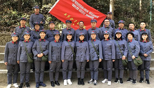 14日,學(xué)員們走上“志仁小道”,在這條曲折山路上,新縣首位共產(chǎn)黨員——王志仁奔走宣傳革命思想、努力開(kāi)展革命活動(dòng)。在爬山的途中路遇陡坡,旁邊的隊(duì)友立刻伸出援助之手;渴了,沒(méi)事我的水給你先喝……身著紅軍服,腳走崎嶇道,學(xué)員們仿佛置身那段熱血?dú)v史中,用自身行動(dòng)弘揚(yáng)革命先輩不畏艱險(xiǎn)、頑強(qiáng)斗爭(zhēng)的光榮傳統(tǒng)。 下午在新縣鄂豫皖蘇區(qū)首府烈士陵園,全體學(xué)員懷著肅穆的心情向革命先烈們敬獻(xiàn)花籃并真誠(chéng)致禮,在革命烈士事跡陳列廳重溫入黨宣誓。陳列的一個(gè)個(gè)實(shí)物、一幅幅畫卷,將蘇區(qū)可歌可泣的英雄事跡清晰地展現(xiàn)在大家面前,舉起右手,莊嚴(yán)宣誓,英雄們的感人事跡激勵(lì)著我們,在來(lái)之不易的和平年代,用實(shí)際行動(dòng)來(lái)弘揚(yáng)革命先輩用鮮血和生命凝結(jié)的紅色文化。
