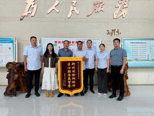 鄭房測(cè)繪公司第三分公司接到鄭州新發(fā)展?jié)欀梅康禺a(chǎn)開發(fā)有限公司贈(zèng)送錦旗 高鵬/攝
