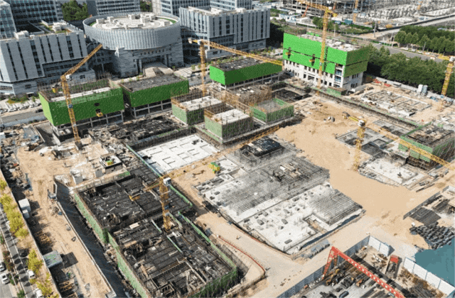 五月的城發(fā)·高新生物經(jīng)濟(jì)產(chǎn)業(yè)園,塔吊繁忙運(yùn)轉(zhuǎn)、機(jī)械設(shè)備轟鳴不斷,工人們有條不紊地進(jìn)行施工作業(yè),項目建設(shè)現(xiàn)場到處一派熱火朝天的繁忙景象。其中,項目一期的主樓工程基本完成,室外配套管網(wǎng)、景觀正在施工中;項目三期的土方、樁基已完成,正在交叉推進(jìn)正負(fù)零和主體施工,部分樓棟已施工至六層。