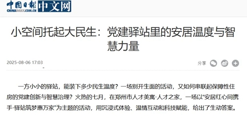 一方小小的驛站,能裝下多少民生溫度?一場(chǎng)別開(kāi)生面的活動(dòng),又如何串聯(lián)起保障性住房的黨建創(chuàng)新與智慧治理?火熱的七月,在鄭州市人才美寓·人才之家,一場(chǎng)以“安居紅心同攜手·驛站筑夢(mèng)惠萬(wàn)家”為主題的活動(dòng),用沉浸式體驗(yàn)、溫情互動(dòng)和科技賦能,給出了生動(dòng)答案。