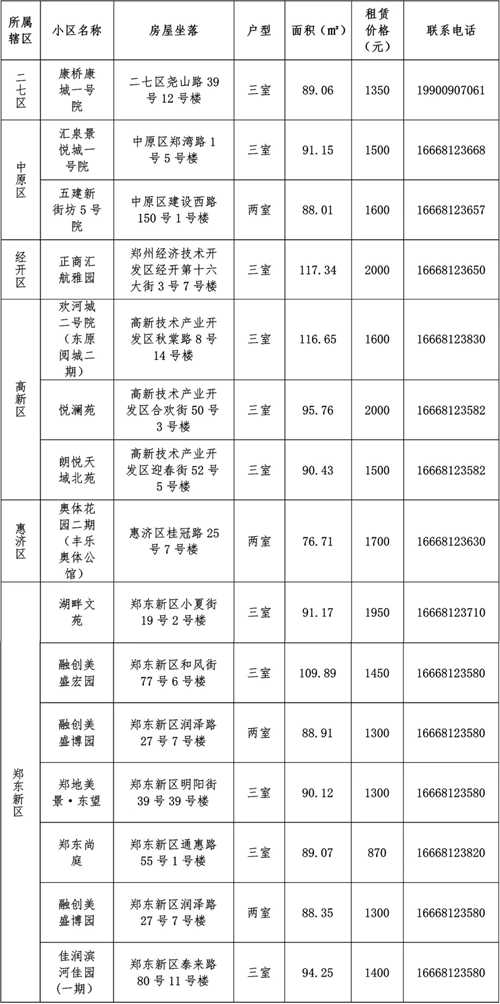 本批次配租房源共計15套(41間),其中為二七區(qū)1套(3間)、中原區(qū)2套(5間)、經(jīng)開區(qū)1套(3間)、高新區(qū)3套(9間)、惠濟區(qū)1套(2間)、鄭東新區(qū)7套(19間)。水電費均為民用水電標準,房源精裝修交付,周邊配套設(shè)施齊全,配備家具家電,拎包入住,后續(xù)房源將根據(jù)裝修進度情況陸續(xù)配租,具體以系統(tǒng)實際上線為準。