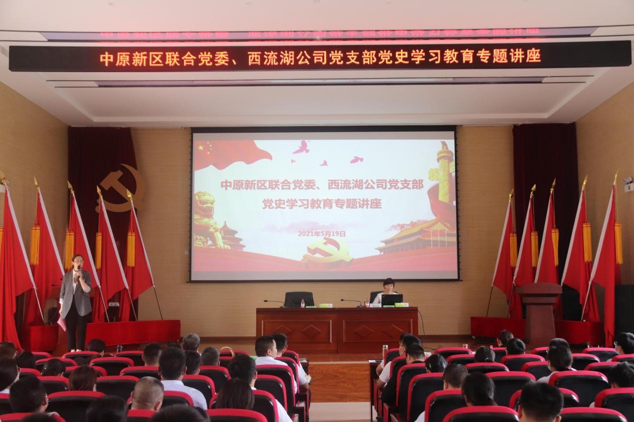 黨史是最好的教科書和營養(yǎng)劑,在中國共產(chǎn)黨成立100周年之際,為扎實(shí)開展好黨史學(xué)習(xí)教育,引導(dǎo)廣大黨員干部職工知史愛黨、知史愛國,進(jìn)一步樹牢“四個(gè)意識”、堅(jiān)定“四個(gè)自信”、做到“兩個(gè)維護(hù),推動(dòng)黨史學(xué)習(xí)教育取得實(shí)效,5月19日下午,中原新區(qū)聯(lián)合黨委、西流湖公司黨支部邀請河南省委黨校黨史教研部副主任、副教授楚向紅老師開展黨史學(xué)習(xí)教育專題講座。公司領(lǐng)導(dǎo)班子、西流湖公司、鄭地發(fā)展以及中原新區(qū)聯(lián)合黨委黨員職工代表共計(jì)150余人參加講座。