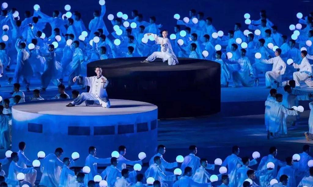 5塊總面積,超過3000平米的輕型透明網(wǎng)幕,130余臺(tái)高清投影機(jī)覆蓋上萬平米場(chǎng)地,通過威亞的技術(shù)手段和地面投影相呼應(yīng)。地面、空中、立面多維度的表演空間,將各種特色民族元素呈現(xiàn)出來,呈現(xiàn)了各族人民的幸福生活,書寫出一張張民族文化名片。當(dāng)現(xiàn)場(chǎng)各族人民跳起歡快的舞蹈,當(dāng)各民族美麗的服飾在現(xiàn)場(chǎng)轉(zhuǎn)出最絢麗的弧度,展現(xiàn)出各民族團(tuán)結(jié)奮進(jìn)、朝氣蓬勃的精神風(fēng)貌。作為河南特色的少林和太極兩個(gè)重要元素也在本次開幕式精彩亮相,由塔溝武校數(shù)千名演員演繹。隨著音樂節(jié)奏的轉(zhuǎn)換,他們變幻各種造型,動(dòng)靜結(jié)合、氣勢(shì)恢宏,讓觀眾更加了解精彩河南。