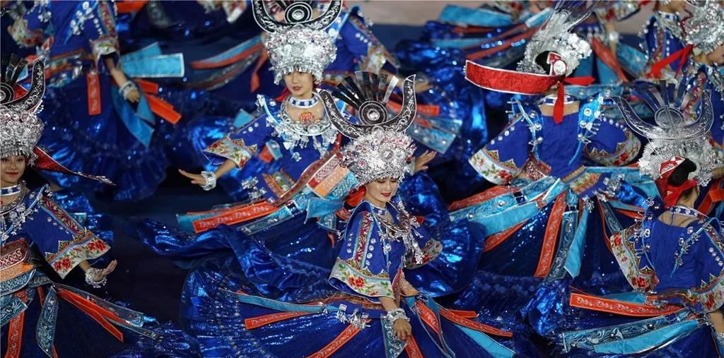 各民族運(yùn)動(dòng)員身著民族盛裝,精神抖擻,闊步走來。各代表團(tuán)行進(jìn)中30秒的駐停表演,展示了中華文化百花園的絢麗多姿,讓現(xiàn)場(chǎng)觀眾贊嘆沉醉。