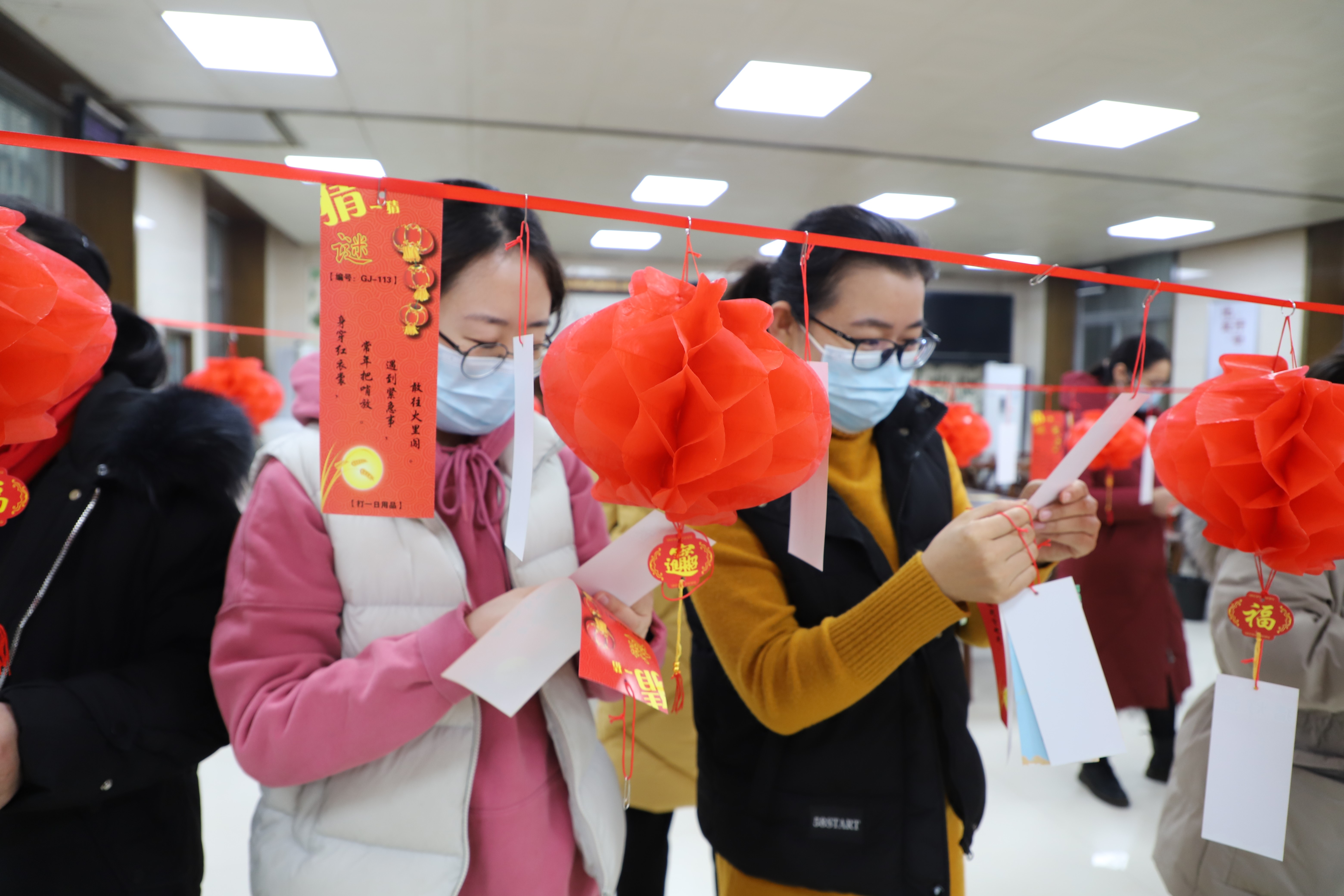 食堂內(nèi)部,工作人員在充分做好防疫工作的基礎(chǔ)上,提前將二百余條顏色不一的謎語條高高掛起。謎語有猜成語的,有猜動物花鳥的,有猜歇后語的,有猜日常用品的,生動而活潑、面廣而量大。在益智填趣、娛樂生活的同時,更以這種傳統(tǒng)高雅的文藝形式展示了一方水土歷史、人文、民俗之特色與魅力,集趣味性、知識性于一體,讓大家樂中有學,共同領(lǐng)略祖國語言的無窮奧妙?;顒蝇F(xiàn)場,還為大家精心準備了春節(jié)相關(guān)的禮品,極大激起了參與職工的興趣。